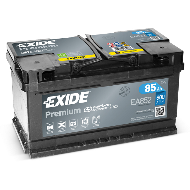 Аккумулятор Exide Premium Carbon Boost® 2.0 заряжается в 2 раза быстрее, благодаря использованию запатентованной технологии Exide, заключающейся в применении углеродных добавок при производстве отрицательных пластин. Данная технология, открытая во время разработки наших моделей AGM и EFB аккумуляторов, позволила улучшить прием заряд и тем самым значительно сократить время зарядки. Аккумуляторы Premium Carbon Boost® 2.0 предназначены для автомобилей с новейшим электронным оборудованием, интенсивной езды в городских условиях и эксплуатации в экстремальных погодных условиях.