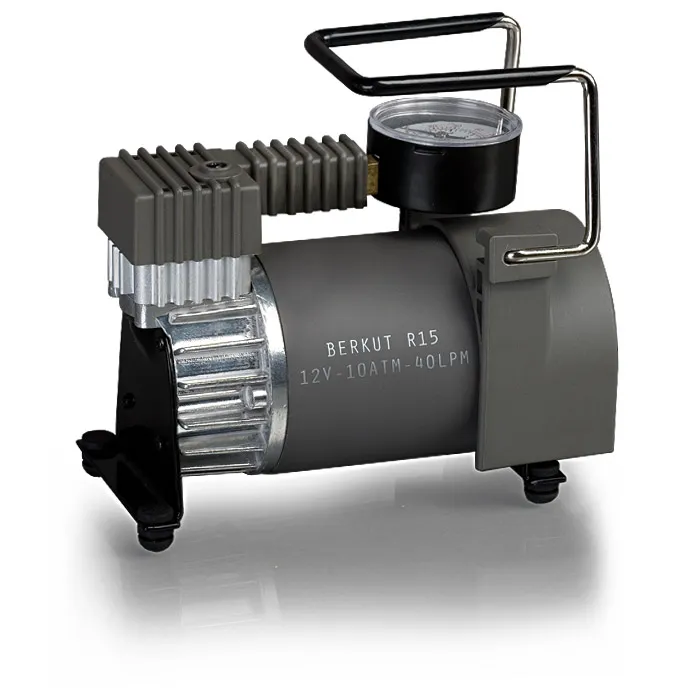 Модель BERKUT R15 является самым популярным компрессором в линейке за счет небольших габаритных размеров, мощного электро-двигателя и подключения через гнездо прикуривателя автомобиля. Компрессор накачивает шины легковых автомобилей, микроавтобусов и коммерческого транспорта. Компрессор BERKUT R15 снабжен длинным шлангом с качественным навинчивающимся наконечником на ниппель колеса и точным манометром. Более того, имеется дополнительный клапан DEFLATOR для точной регулировки давления в шине.