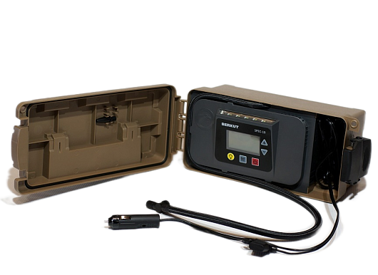 BERKUT SPEC-19 – это современный автомобильный компрессор с повышенной производительностью и электронным управлением, который интегрирован в специальный пластиковый милитари-кейс.