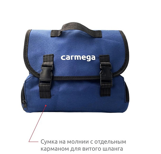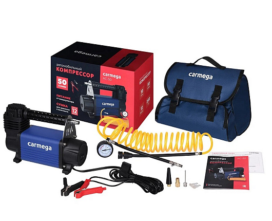 Надежный компрессор CARMEGA AC-50 с легкостью накачает не только колесо Вашего автомобиля, но и поможет подкачать мяч, резиновую лодку или матрас. Для этого в комплекте предусмотрен набор переходников.