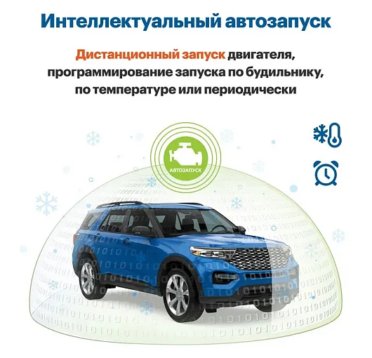 Интеллектуальный автозапуск позволяет осуществлять дистанционный и автоматический запуск двигателя по температуре, в заданное время, по просадке АКБ или дням недели. Комфорт гарантирован
