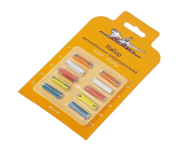 Набор автомобильных цилиндрических предохранителей включает в себя: