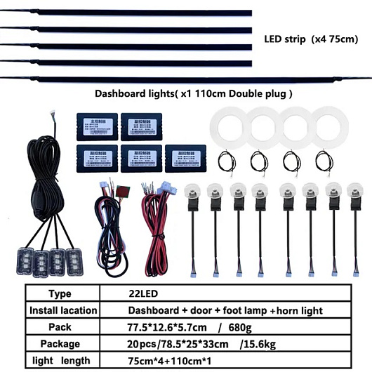 Светодиодная подсветка салона Ambient Light 18 (4+4+4 двери, 4 динамика, 4 пол, торпедо)