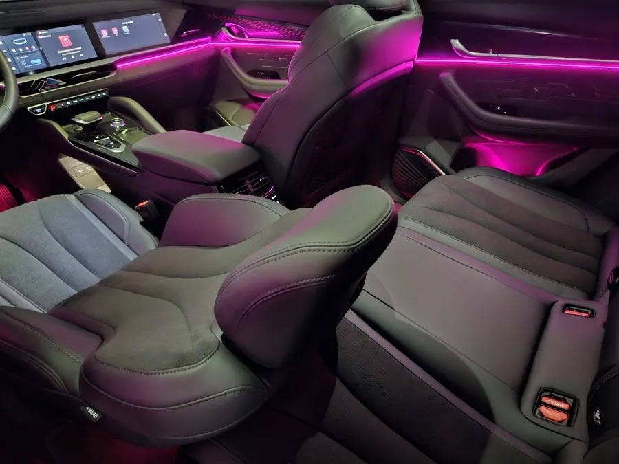 При этом выглядит она как штатный элемент салона и не видна при дневном свете. Регулировать подсветку можно как со штатного монитора, так и через приложение на смартфоне. Подключение к телефону дает возможность менять цвета и яркость, настраивать индивидуальные сценарии освещения, что позволит создать уникальную и комфортную атмосферу, добавит элегантности и стиля.