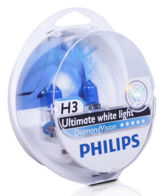 Лампа галоген H3 (12v 55w PK22s) Philips Diamond Vision (холод. свет-голуб) (комп)