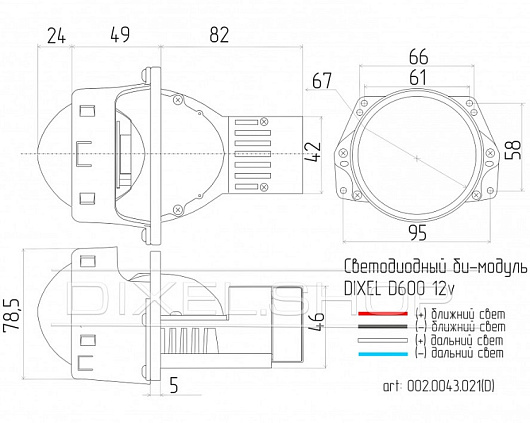 Данный светодиодный би-модуль предназначен для замены штатных галогенных, ксеноновых либо светодиодных линз. По габаритным размерам DIXEL BI-LED White Night D600 существенно меньше модуля Hella 3R,5R. Крепежные отверстия модуля полностью соответствуют размерам модуля Hella 3R,5R.