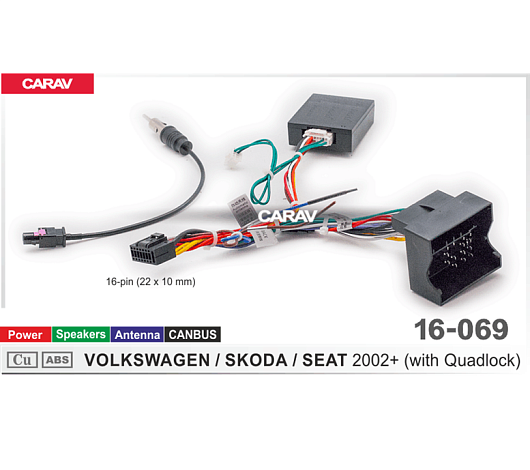 Адаптер CARAV 16-069 (Android ГУ (16-pin) VOLKSWAGEN-SKODA-SEAT 2002+ (all with Quadlock))