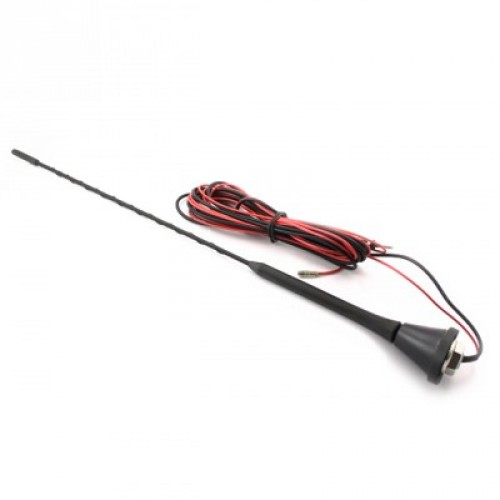 Радиосигнал принимается съемным прутком с противошумной навивкой. В нижней части прутка внутри пластикового неразборного кожуха расположена стальная пружина, которая возвращает пруток в исходное состояние, если он отклонен от естественного положения веткой, крышей гаража и т.д. Верхняя часть прутка выполнена из прочного гибкого стеклотекстолитового стержня. Поверху стержня навита медная проволока, выполняющая сразу две функции - прием радиосигнала и устранение свиста от прутка на большой скорости (более 160 км\час) за счет определенного шага навивки проволоки. Проволока и стержень обтянуты термоусадочной трубкой. Резьба прутка М5 или М6, внутренняя или наружная (может меняеться в зависимости от полученных на производство материалов).