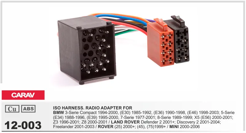 Евро разъём CARAV 12-003 (ISO адаптер BMW 1977-2001 / LAND ROVER 2001-2004 / ROVER 99+