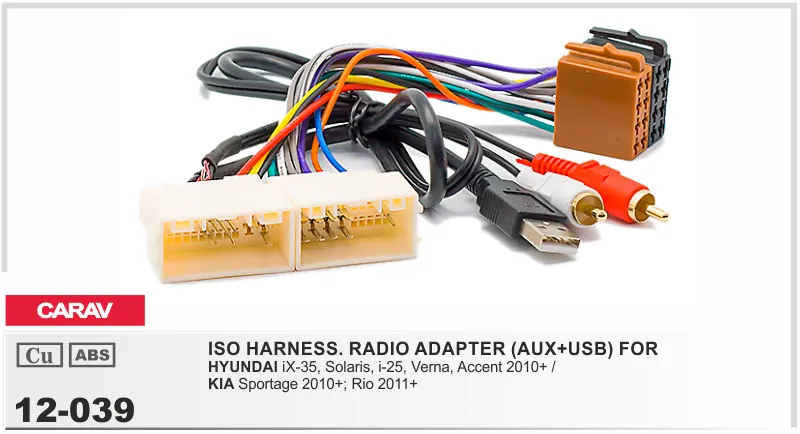 Евро разъём CARAV 12-039 (ISO адаптер HYUNDAI iX-35, Solaris, i-25, Verna, Accent 2010+ / KIA Sp
