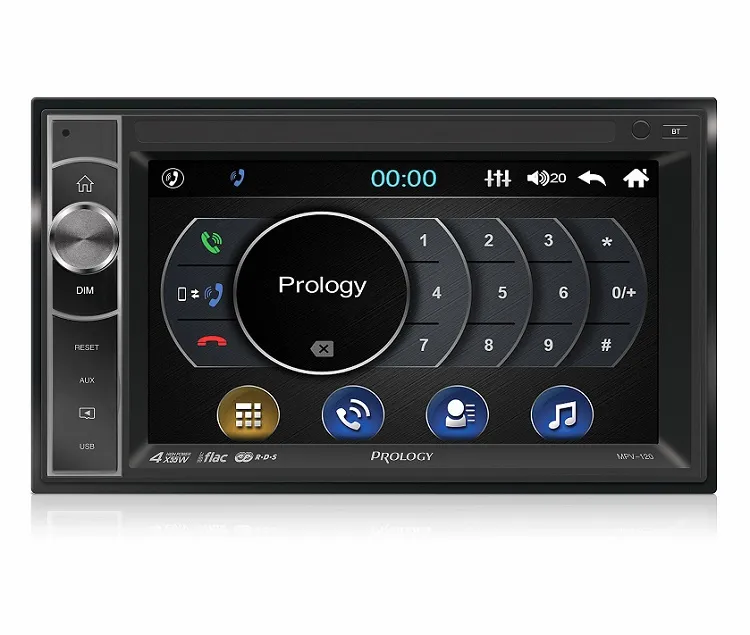 Автомобильный мультимедийный центр PROLOGY MPV-120 монтажного размера 2DIN обеспечивает прием радиостанций в диапазонах FM и УКВ, воспроизведение медиафайлов форматов MP3, MKV, MPEG4, WAV, WMA, JPEG и FLAC, записанных на карты памяти USB / microSD, передачу звука с внешних источников, а также управление мобильным телефоном через интерфейс Bluetooth (version 4.2). Многоцветная, изменяемая подсветка клавиш управления на передней панели автомагнитолы. Поддерживается подключение штатных кнопок управления аудиосистемой на руле (интерфейс SWC).