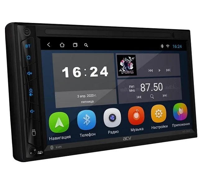 Мультимедиа станция ACV AD-7200 воспроизводит аудио и видео c разных источников, оснащена современным Bluetooth модулем, опцией управления с кнопок на руле, поддержкой камеры заднего вида. Читает большиснтво популярных форматов аудио и видео файлов.