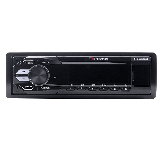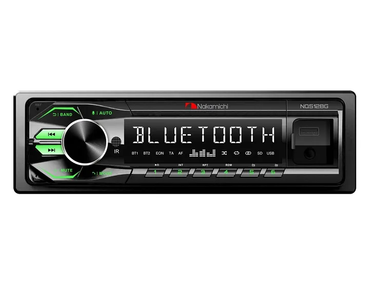 Nakamichi NQ512BG (зелёная подсветка) – USB/Bluetooth/FM цифровой медиа-ресивер формфактора 1DIN. Крупный, прекрасно читаемый дисплей. Максимальная мощность встроенного усилителя 4х50 Вт. На борту Bluetooth версии 5.1 с поддержкой профилей A2DP, HPP, HSP — это означает, что аппарат способен принимать аудиофайлы с смартфона и поддерживает режим Hands Free с внешним микрофоном (опция) для безопасного вождения. Более того, осуществлена возможность управления медиа-ресивером с помощью приложения для Android и iOS. Фронтальный порт USB принимает флэш-накопители до 64 ГБ и обеспечивает зарядку мобильных гаджетов 5В/1А. Поддержка аудиофайлов форматов: MP3, WAV, FLAC, WMA. NQ512B имеет 2 пары линейных выходов для подключения внешних усилителей. За коррекцию частотной характеристики отвечает 32 полосный эквалайзер. Помимо управления из приложения, аппарат имеет возможность работы с помощью пульта ДУ (в комплекте).