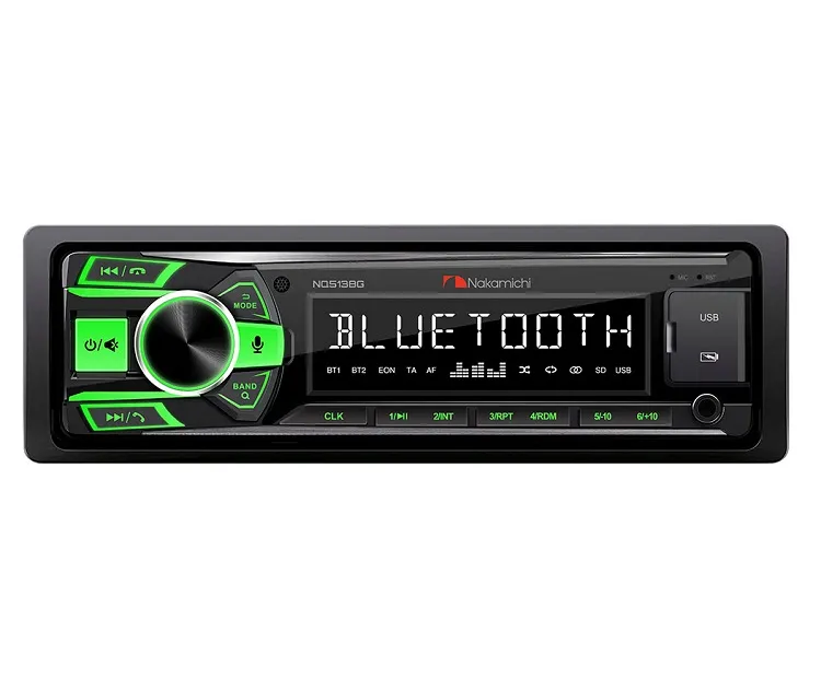 Для прослушивания радиостанций встроен приемник FM. Автопроигрыватель Nakamichi NQ513BG оснащен ЖК-дисплеем и кнопками с зеленой подсветкой. В комплекте поставляется пульт ДУ, который гарантирует удобное удаленное управление.