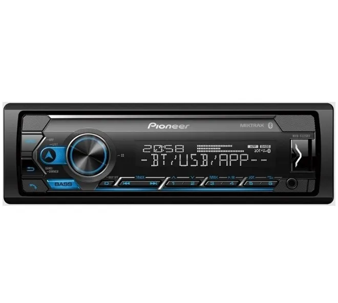 Автопроигрыватель Pioneer MVH-S325BT способен обеспечить высокое качество звука и удобство в пользовании. Он соответствует востребованному типоразмеру 1DIN и обладает номинальной мощностью 200 Вт. Для воспроизведения аудиоконтента с различных источников реализованы технология беспроводной синхронизации Bluetooth, порт USB, разъем AUX. Дисплей с белой подсветкой символов позволяет контролировать параметры воспроизведения, а кнопки с синей подсветкой помогают выполнять их настройку. Из особенностей Pioneer MVH-S325BT – пульт ДУ и проигрыватель MP3.