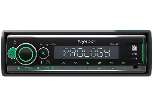 PROLOGY CMX-410 — FM/USB-ресивер с Bluetooth®, поддерживающий все популярные аудиоформаты, включая MP3, WAV и FLAC, оснащается 20-полосным эквалайзером, обеспечивающим более тонкую настройку звука. Цифровой PLL-тюнер FM-диапазона дает возможность сохранить в памяти до 18 станций. Шесть выходов RCA позволяют построить в автомобиле полноценную аудиосистему с внешними усилителями и сабвуфером. Автомагнитола имеет стандартный типоразмер 1DIN, минимальную установочную глубину 100 мм и оснащена разъемом ISO. CMX-410 поддерживает функцию многоцветной двухзонной подсветки (MULTICOLOR) для клавиш управления и индикаторного дисплея. Пользователь может выбрать один из девяти цветов для каждой зоны (дисплей / кнопки управления) или настроить собственный при помощи приложения на смартфоне. Ресивером можно управлять при помощи мобильного приложения Prology Audio*, установленного на смартфон с операционной системой Android или iOS.