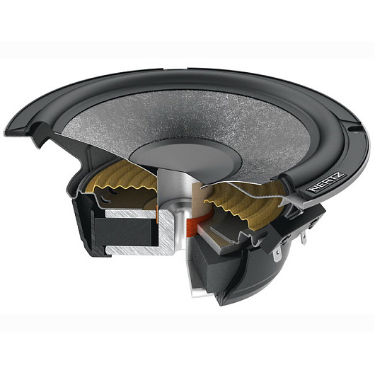 При разработке Hertz C 165 особое внимание уделялось поиску оптимального материала диффузора, который сочетал бы в себе одновременно жёсткость, лёгкость и хорошее демпфирование, т. е. был бы лишён собственных призвуков. Результатом поисков и исследований стал материал SPP-M (Semi Pressed Paper Mica), который имеет все преимущества целлюлозы в частности малый вес и хорошее демпфирование и при этом обладает повышенной жёсткостью благодаря использованию слюды. Динамик способен на мощное, чистое и артикулированное звучание. Длинноходная магнитная система с увеличенным ферритовым магнитом обеспечивает превосходный контроль даже на высокой громкости.