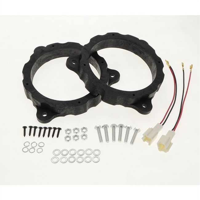 - Комплект переходных колец с монтажными аксессуарами для установки динамиков диаметра 130 мм в штатные места в задние двери в автомобили