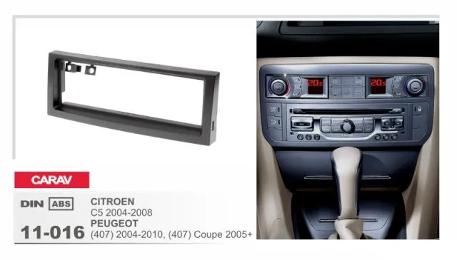Данная монтажная рамка изготовлена из пластмассы ABS, что говорит о высоком качестве товара! Стоит отметить, что цвет и структура покрытия совпадают с заводскими деталями интерьера автомобиля. При желании рамку можно покрасить, либо оклеить виниловой плёнкой. 1-DIN монтажная рамка для а/м CITROEN C5 2004-2008 / PEUGEOT (407) 2004-2010, (407) Coupe 2005+