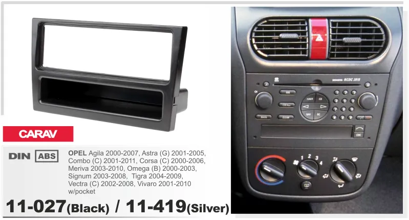 Переходная рамка CARAV 11-027 (1-DIN OPEL Astra 2000-2003,Corsa 2000-2006,Agila 2000-2007,Omega 1994