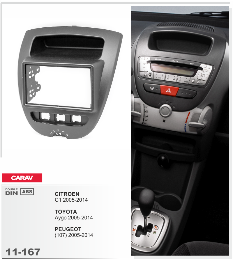 Переходная рамка CARAV 11-167 (2-DIN CITROEN C1 2005+ / TOYOTA Aygo 2005+ / PEUGEOT (107) 2005+)
