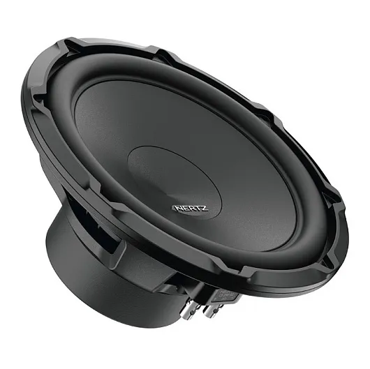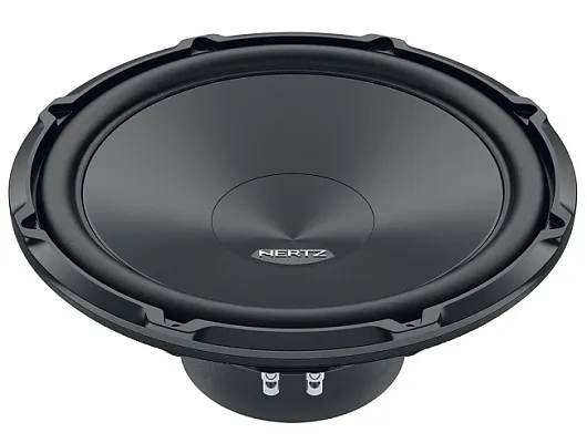 Сабвуферы Hertz Cento выпускаются в двух стандартных типоразмерах – 250 и 300 мм, каждый из них в двух вариантах – с одной звуковой катушкой сопротивлением 2 или 4 Ома (индексы S2 и S4 в названиях расшифровываются просто как Single 2 и Single 4 Ohm). Возможность простого выбора сопротивления в зависимости от предпочтений слушателя, возможностей усилителя и количества сабвуферов в системе облегчает их подключение и конфигурацию. Шестислойная звуковая катушка диаметром 35 мм намотана на каркасе из фибергласса, устойчивого к воздействию высоких температур и крепится к спайдеру и диффузору с помощью специального вентилируемого кольцевого адаптера, который значительно увеличивает надежность крепления. Еще одна немаловажная деталь – сабвуферы Hertz Cento оснащены более качественными нажимными клеммами для подключения акустических проводов сечением до 8 AWG.