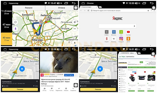 Головное устройство Farcar RL856 можно использовать в качестве полноценного мультимедиа центра. Вы сможете просматривать фильмы на мониторе или прослушивать музыку как и с интернета, так и через USB разъем в бардачке. Так же магнитола поддерживает разделение экрана на 2 части - можно одновременно запустить Яндекс.Навигатор и просмотр фильмов. Для звонков по громкой связи используется встроенный Bluetooth (поддержка телефонной книги, журнал звонков, номеронабиратель). Так же через Bluetooth можно слушать музыку и переключать треки кнопками на руле.