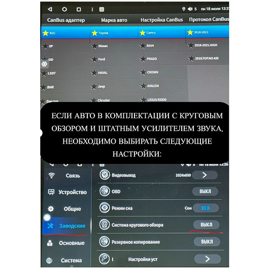 - Кроме базовых функций поддерживает штатный усилитель звука, штатную камеру или систему 360.