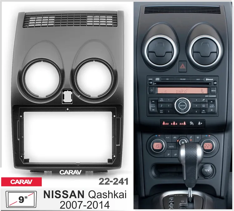 Переходная рамка для установки атомагнитолы. CARAV 22-241: 9" / 230:220 x 130 mm / NISSAN Qashkai 2007-2014
