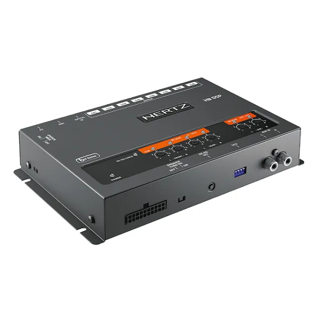 Автомобильный процессор звука Hertz H8 DSP имеет 8 независимых каналов настройки, 8 аналоговых линейных выходов для подключения к усилителю мощности. Функции настройки звучания включают: кроссовер с фильтрами Линквица-Райли (Linkwitz- Riley) или Баттерворта (Butterworth) любого типа для любого выбранного канала, 31-полосный 1/3-октавный графический эквалайзер, схему временных задержек, инвертор фазы и регулировку уровня громкости каждого канала. В очень широком диапазоне и с максимально возможной точностью можно отрегулировать звучание каждого канала как по частоте, так и по временным задержкам. Вручную это сделать непросто, поэтому настройку можно выполнить с ноутбука, который подключается через USB порт устройства. Еще один нюанс - за дополнительную плату можно приобрести модуль дистанционного управления системой Hertz DRC HE. Он позволяет оперативно осуществлять ряд настроек в которые входят регулировка громкости, уровня сабвуферного канала, баланса и фейдера (фронт/тыл), выбор входов и настроечных пресетов. В продаже доступен с декабря 2016 года.