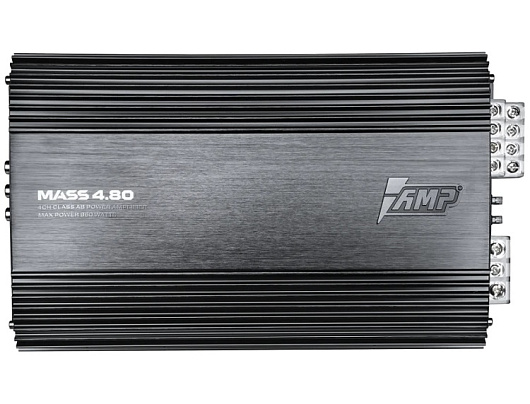 Автомобильный усилитель AMP Micron 4.80, четырехканальный автомобильный усилитель звука с суммарной мощностью 320 Вт. Способен раскачать любую акустику начального и среднего уровня. Имеет на борту расширенные фильтра, что позволяет применять его с рупорными твитерами и эстрадной акустикой. Оснащено встроенным фильтром низких частот для настройки уровня баса и имеет защиту от перегрева и короткого замыкания. AMP MASS 4.80 обладает компактными размерами, малым весом и прост в установке.