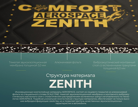 Виброакустический материал Comfort mat AEROSPACE ZENITE (0.48 x 0.32 м)