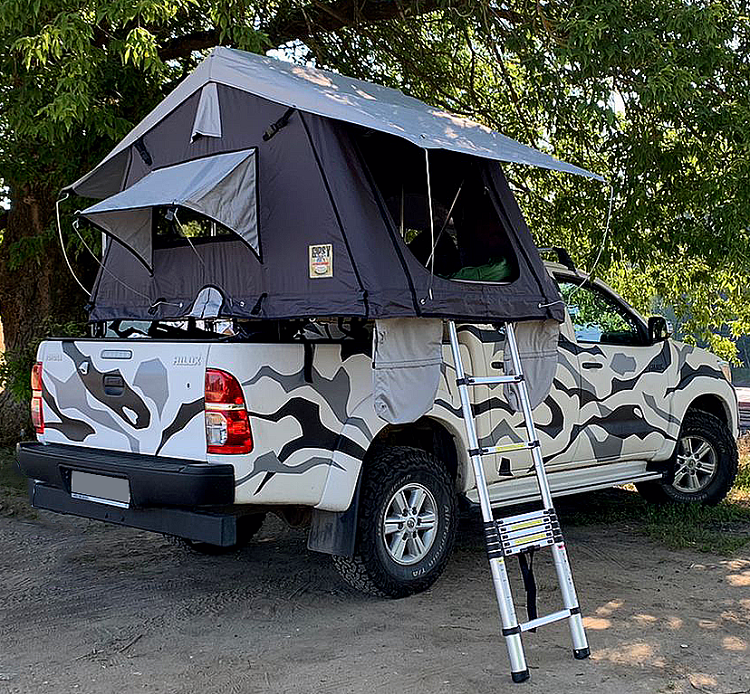 Может использоваться для перевозки автопалатки по сравнению с стандартным багажником имеет усиленную конструкцию.