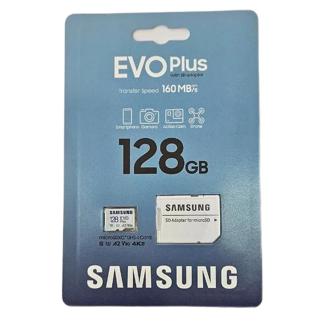 Карта памяти Samsung EVO Plus microSDXC 128 Гб [MB-MC128GA/RU] позволит увеличить встроенную память вашего смартфона, планшета и любого другого портативного устройства, тем самым предоставив вам дополнительные возможности для хранения данных. Форм-фактор microSDXC этой модели определил ее совместимость с огромным количеством цифровой техники. Этот надежный, долговечный и практичный аксессуар поддерживает организацию хранения виртуальной информации на ней при помощи файловой системы exFAT.