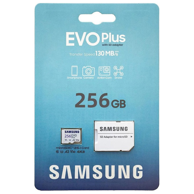 Если в телефоне или планшете не хватает встроенной памяти, Samsung EVO Plus увеличит объем хранилища на нужную величину. В 256 ГБ легко поместятся тысячи фотографий, книг, треков, сотни видеороликов и десятки фильмов.
