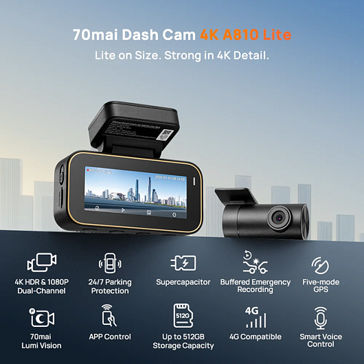 Видеорегистратор 70mai Dash Cam A810 Lite 4K