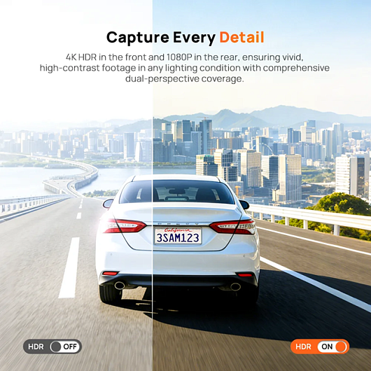4K HDR + 1080P: Сверхчеткое видео передней камеры в разрешении 3840x2160P и Full HD задней (RC21 в опции).
