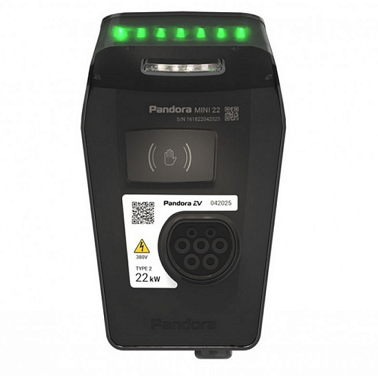 Универсальная зарядная станция переменного тока Pandora MINI 22 поддерживает зарядку всех типов электромобилей и подключаемых гибридов. Оборудована розеткой формата Type 2, что делает её совместимой с различными типами зарядных кабелей, которые можно подобрать и приобрести дополнительно в зависимости от модели авто: