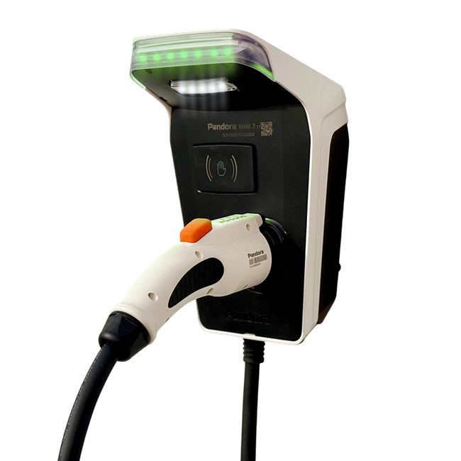 Домашняя зарядная станция Pandora MINI 711С предназначена для зарядки переменным током всех типов электромобилей и гибридов в частном доме, в гараже или в подземном паркинге. Отличительной особенностью является наличие уже встроенного в станцию зарядного кабеля - на выбор: Type2 или GB/T AC. Это позволит автовладельцам значительно снизить затраты на установку станции, поскольку кабель не нужно приобретать дополнительно.