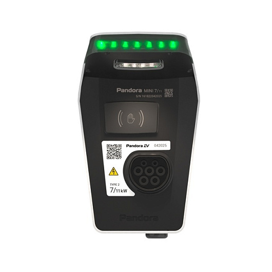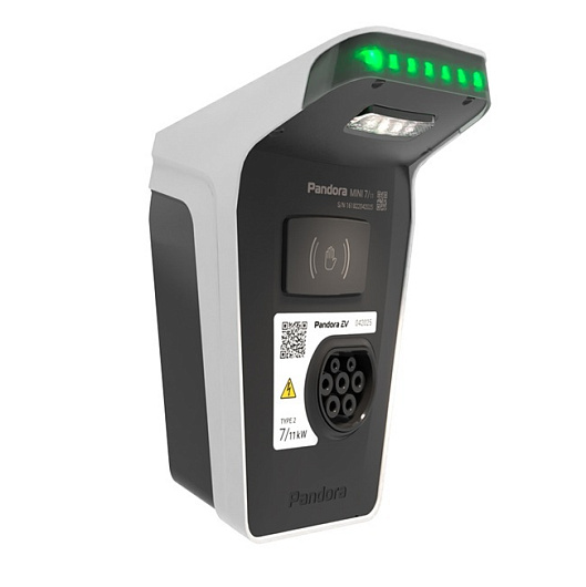 Станция Pandora MINI 711С полностью разработана и произведена в России и создана для эксплуатации даже в самых суровых условиях – диапазон рабочих температур -40+60°C. А для надежной работы используется лакирование всех печатных плат, находящихся внутри станции для защиты от конденсата. Зарядная станция имеет прочную конструкцию с алюминиевой рамой и стильный дизайн. Pandora MINI 711С отличается своей эргономикой – она не только компактная ((В)295 х (Ш)175 х (Г)153), но ещё и лёгкая (1,7 кг). Мощность станции: по 1 фазе – до 7 кВт, по 3 фазам – до 11 кВт.