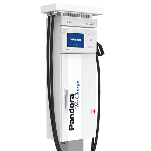 Зарядная станция Pandora Pro Charge 120 предназначена для быстрой зарядки электромобилей постоянным током. Максимальная мощность станции 120 кВт. Монтаж как на открытых площадках (рекомендуется использовать навес или козырек), так и в хорошо проветриваемых помещениях.