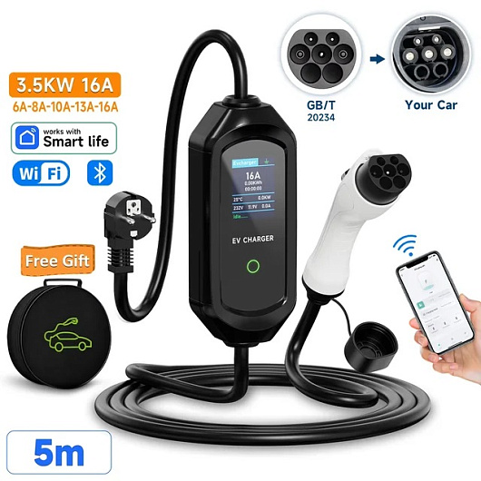 Портативное зарядное утстройство EV Charger GB/T (16A, 1 фаза, 3,5 кВт, 5 м)