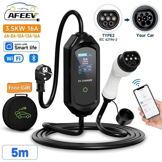 Портативное зарядное утстройство AFEEV TYPE2 (16A, 1 фаза, 3,5 кВт, 5 м)
