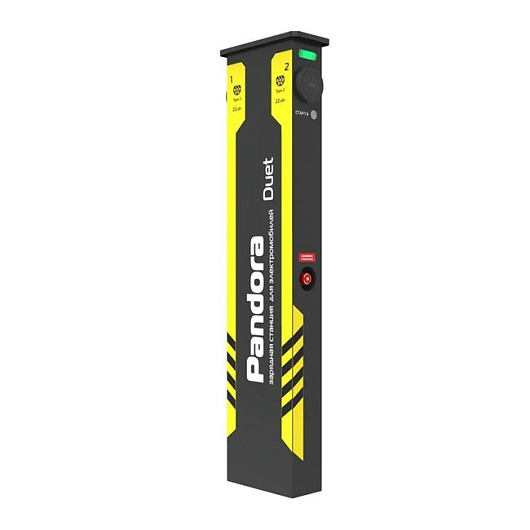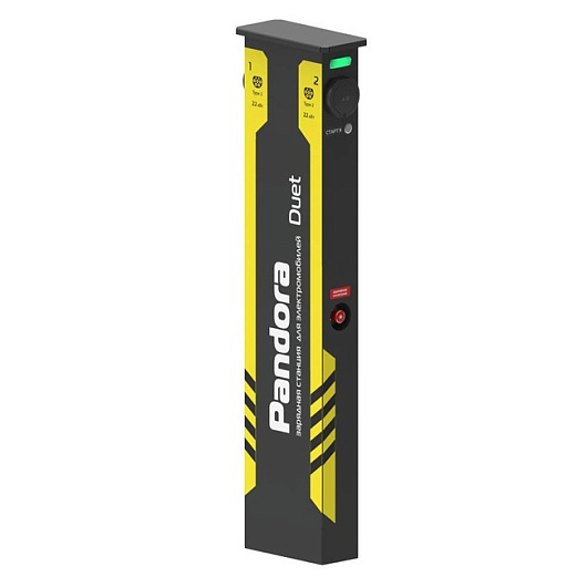 Монтаж станции возможен как на открытых площадках, так и в хорошо проветриваемых помещениях. Pandora DUET укомплектована двумя розетками стандарта Type2, опциональной возможностью комплектования зарядными кабелями «Type2 – Type2», «Type2 – GB/T AC», «Type2 – Type1», «Type2 - Tesla» и фиксацией кабеля в разъеме зарядной станции.