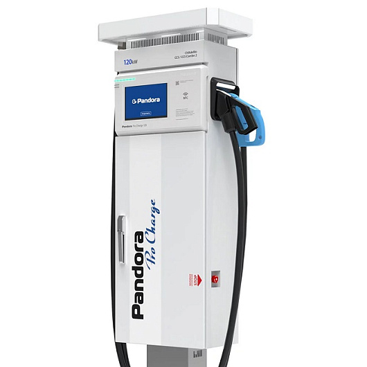Зарядная станция Pandora Pro Charge 120 предназначена для быстрой зарядки электромобилей постоянным током. Максимальная мощность станции 120 кВт. Монтаж как на открытых площадках (рекомендуется использовать навес или козырек), так и в хорошо проветриваемых помещениях.