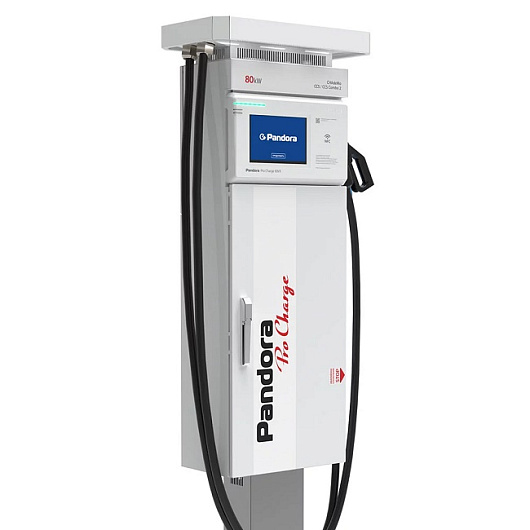 Зарядная станция Pandora Pro Charge 80 предназначена для быстрой зарядки электромобилей постоянным током. Мощность станции 80 кВт. Монтаж как на открытых площадках (рекомендуется использовать навес или козырек), так и в хорошо проветриваемых помещениях. Укомплектована двумя типами зарядных пистолетов CHAdeMO и CCS Combo2.