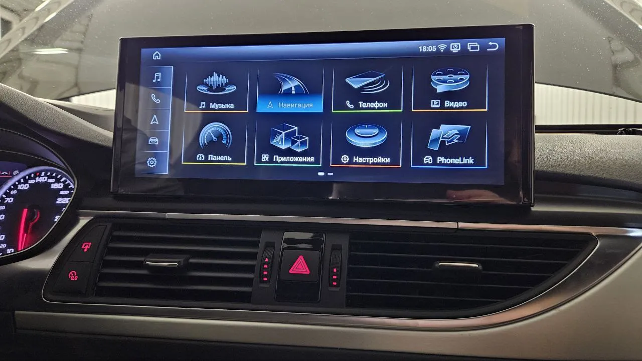 На автомобиль Audi A6 C7 2012 года выполнена замена штатной магнитолы на клиентское мультимедийное устройство на базе Android, привезённое заказчиком из Германии. Несмотря на нестандартную конфигурацию оборудования и необходимость аккуратной адаптации к оригинальной проводке и интерфейсам автомобиля, наши специалисты успешно выполнили монтаж, настройку и полную интеграцию устройства. В результате клиент получил полностью функциональную аудиосистему с сохранением эстетики салона и удобством управления.