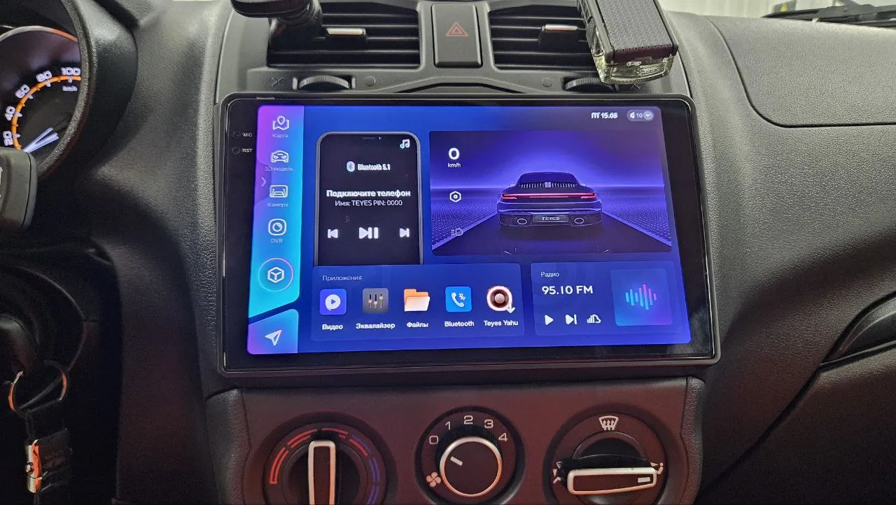 В качестве головного устройства установлена автомагнитола Teyes CC3 2K с 9-дюймовым QLED-экраном, разрешением 2000х1200 и мощным процессором Snapdragon 855. Система работает на базе Android, поддерживает Apple CarPlay, Android Auto, GPS-навигацию, Bluetooth и голосовое управление, обеспечивая высокую производительность и удобство использования.