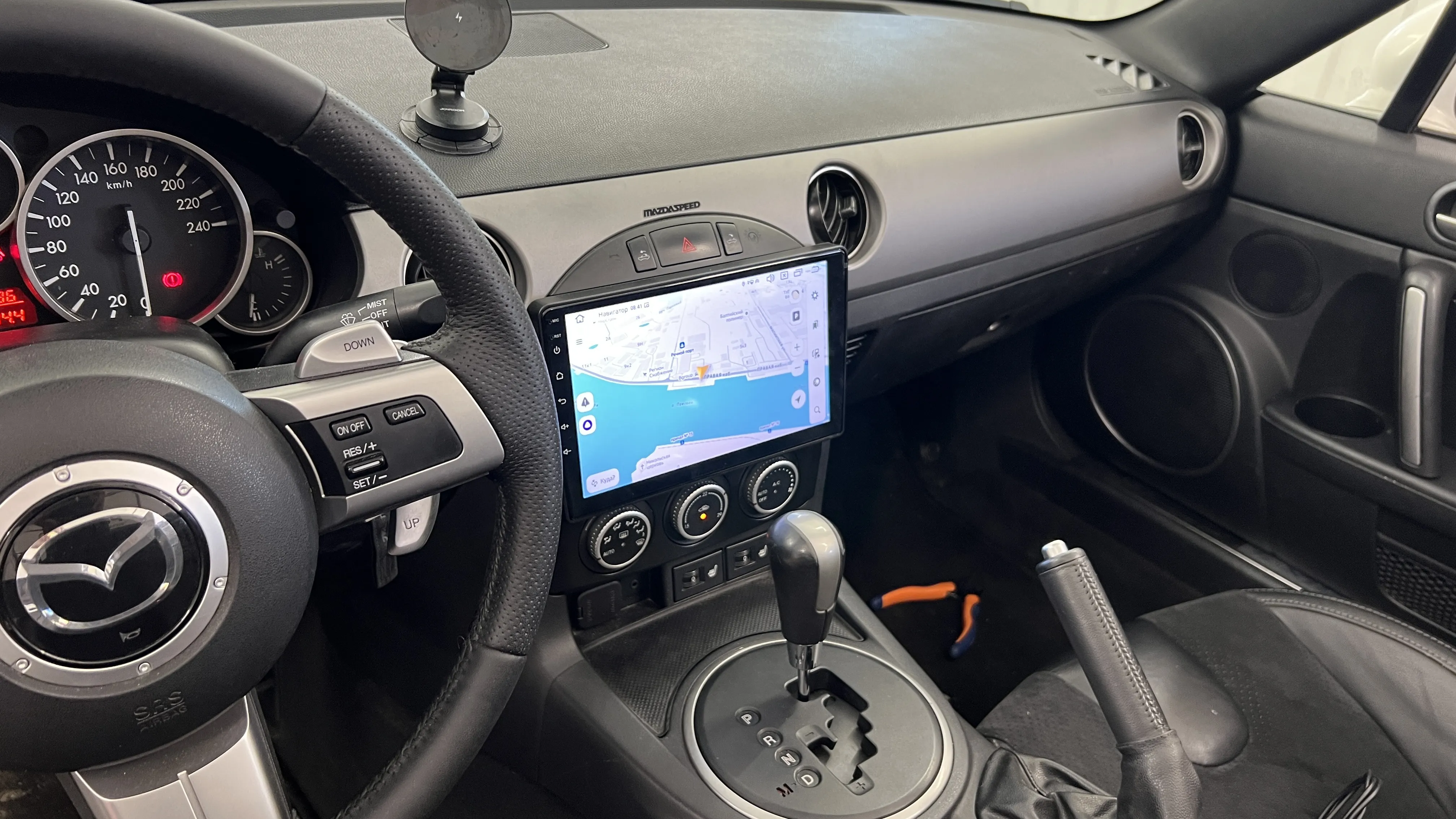 Клиент остался доволен: теперь его Mazda MX-5 оснащена современной мультимедийной системой с навигацией, Bluetooth, интернет-подключением и другими функциями Android.