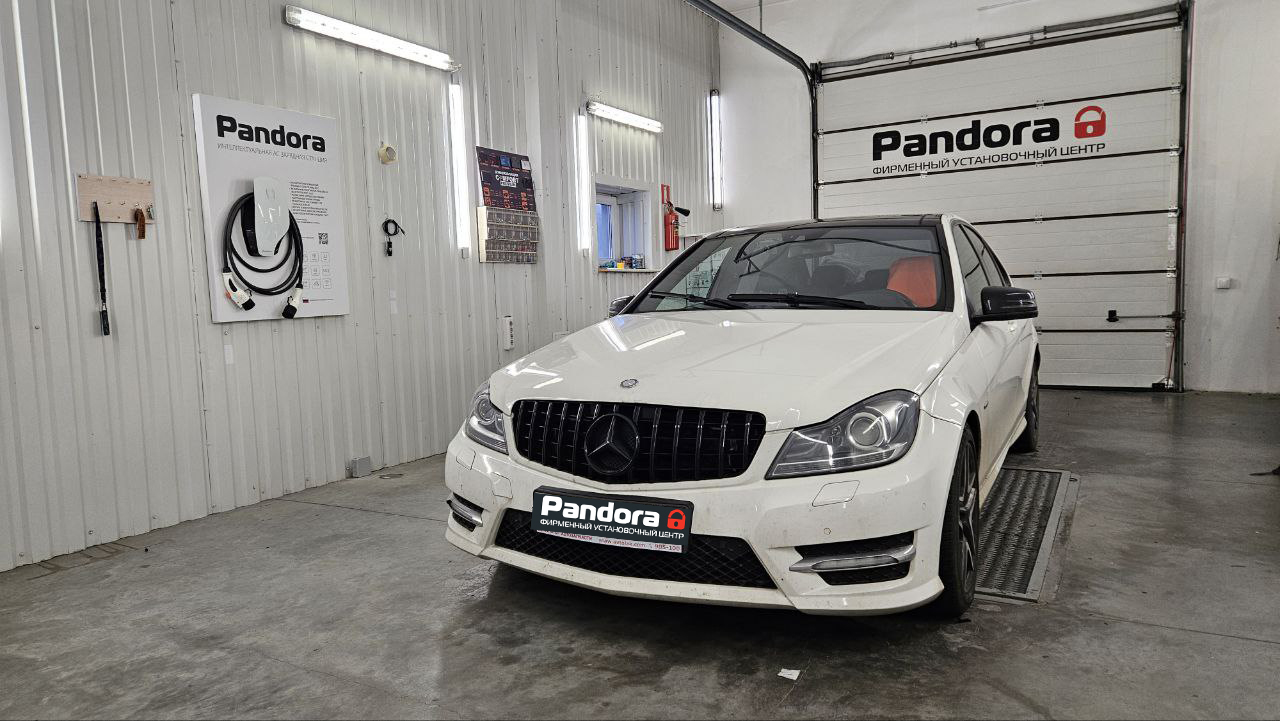 На Mercedes-Benz C-Class (W204, 2012 г.) установили современную охранно-поисковую систему Pandora VX 4G GPS v3 с полной штатной интеграцией и активацией всех ключевых функций — включая удалённый автозапуск двигателя, который особенно ценен в зимний период.